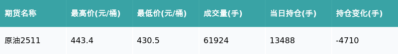 南财智讯10月17日电,南财金融终端盘后期货数据显示,上期能源的原油主力合约收跌2.39%盈丰财富,收盘报432.6元/桶,日内资金流出4.93亿元。其他相关指标见下表: